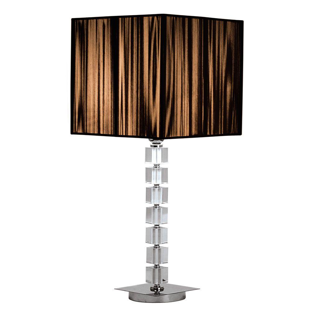 Abajur luminária de mesa Oceano que comporta uma lâmpada de LED de soquete E27 (não inclusa). Seu design moderno e arrojado faz com que seja uma peça ideal para dar um charme aos ambientes internos. Indicado para sala de estar, dormitório, hall de entrada, home office e escritório. Seu material é um bloco de cristal com acabamento liso polido, com base em metal cromado e cúpula. Abajur Oceano com base cromada com cubos de cristal. A cúpula em fio de seda preta com forro branco. Utiliza 1x E27 LED. Lâmpada não inclusa. Produto montado. Medidas: L 30 - P 30 - A 68 cm. Bivolt.