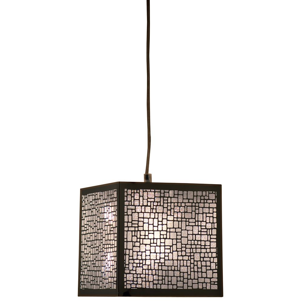 Pendente lustre Apolo em inox cromado, com design arrojado e super moderno pelos cortes retos e pelo desenho recortado a laser na lamina de inox, a película de PVC proporciona um efeito de brilho que atravessa pelo inox, luminária leve e fácil de instalar é indicada para sala de jantar e estar, quartos, lavabos, corredores, hall de entrada e escritórios. Seus materiais são PVC e metal. Comporta 1 lâmpadas de soquete E14 de LED com potência de 7W (não inclusas). Pendente Apolo cromado com cúpula em inox recortado a laser com pvc interno brilhante. 1x LED-E14 não incluso. Produto montado. Medidas: L 18 cm - P 18 cm - H 18 cm. Bivolt